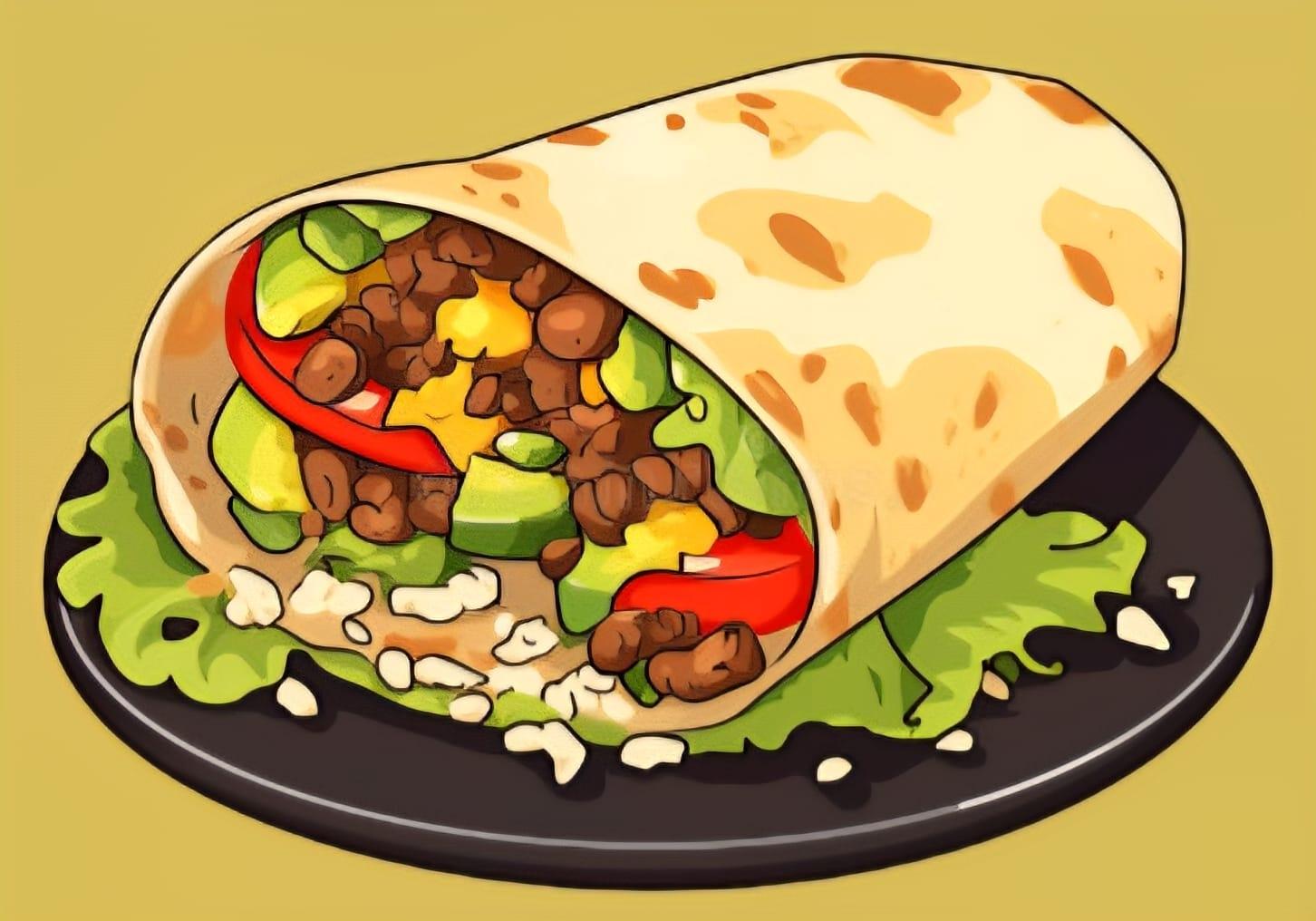 1. Tortilla Avocado - mleté hovězí maso,slanina, cibule, polníček, rajče, ementál, avokádová pasta a zakysaná smetana, servírovaná s americkými brambory a chilli majonézou 159 CZK